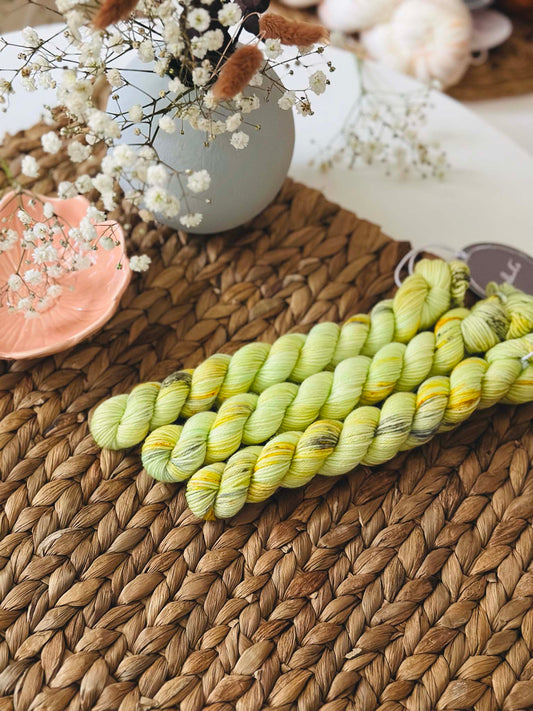 SuperSock is an exceptionally soft fingering weight 85% SW Merino, 15% Nylon sock yarn (400m/100g). Each skein is hand dyed with care and attention in Helsinki, Finland.