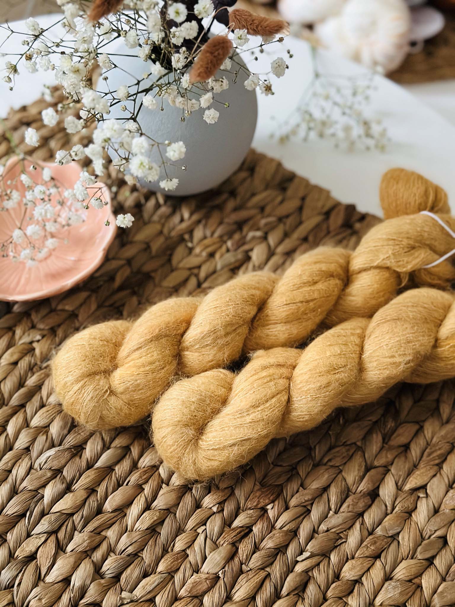 65% Harjattu Suri Alpakka, 35% Silkki