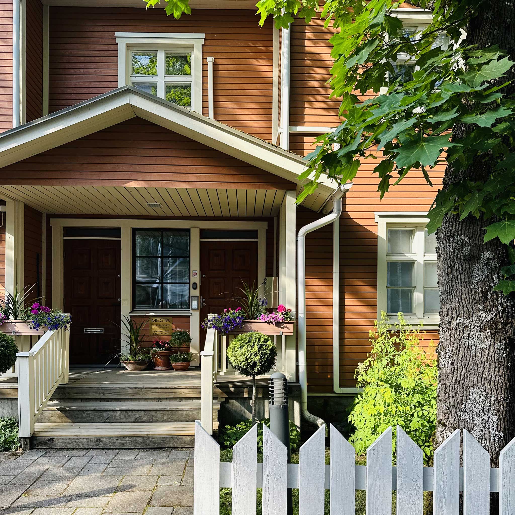 Our little yarn and dye studio is situated in Haaga, Helsinki, in a beautiful, old wooden house. The studio serves as a showroom, little yarn shop and a place to sit down and knit for a bit. In the cozy lounge area, you can knit, drink coffee, browse through knitting books and magazines and get inspired by the yarn. The studio is open a few times a month and you are very welcome to stop by to knit, chat and treat yourself with some squishy new yarn!